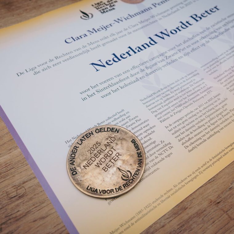 Op woensdag 10 december 2025 werd de Clara Meijer-Wichmann (CMW) mensenrechtenpenning uitgereikt aan de beweging Nederland Wordt Beter (NLWB). De penning werd uitgereikt vanwege de 15 jaar effectieve en vreedzame inzet van Nederland Wordt Beter voor het afschaffen van de racistische figuur zwarte piet, en voor het blijvend aandacht vragen voor de doorwerking van het koloniaal- en slavernijverleden op de Nederlandse samenleving.