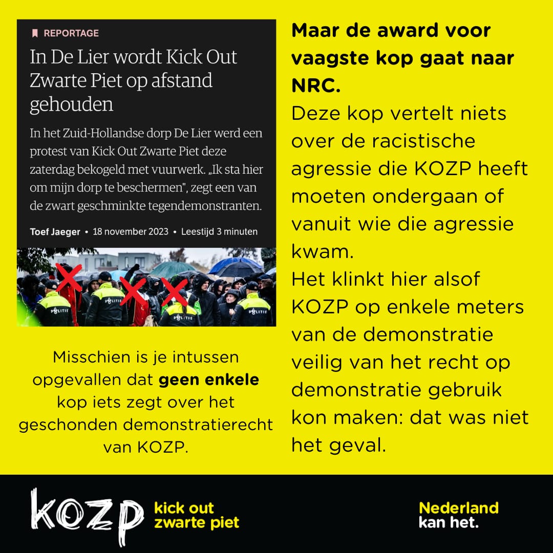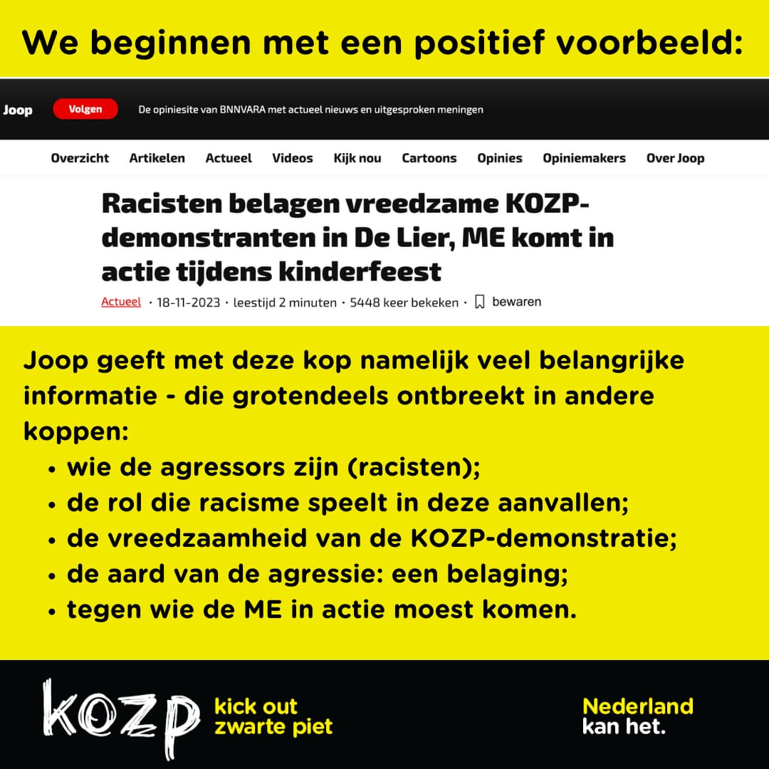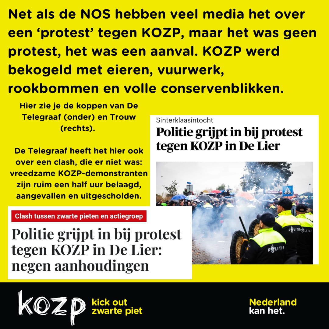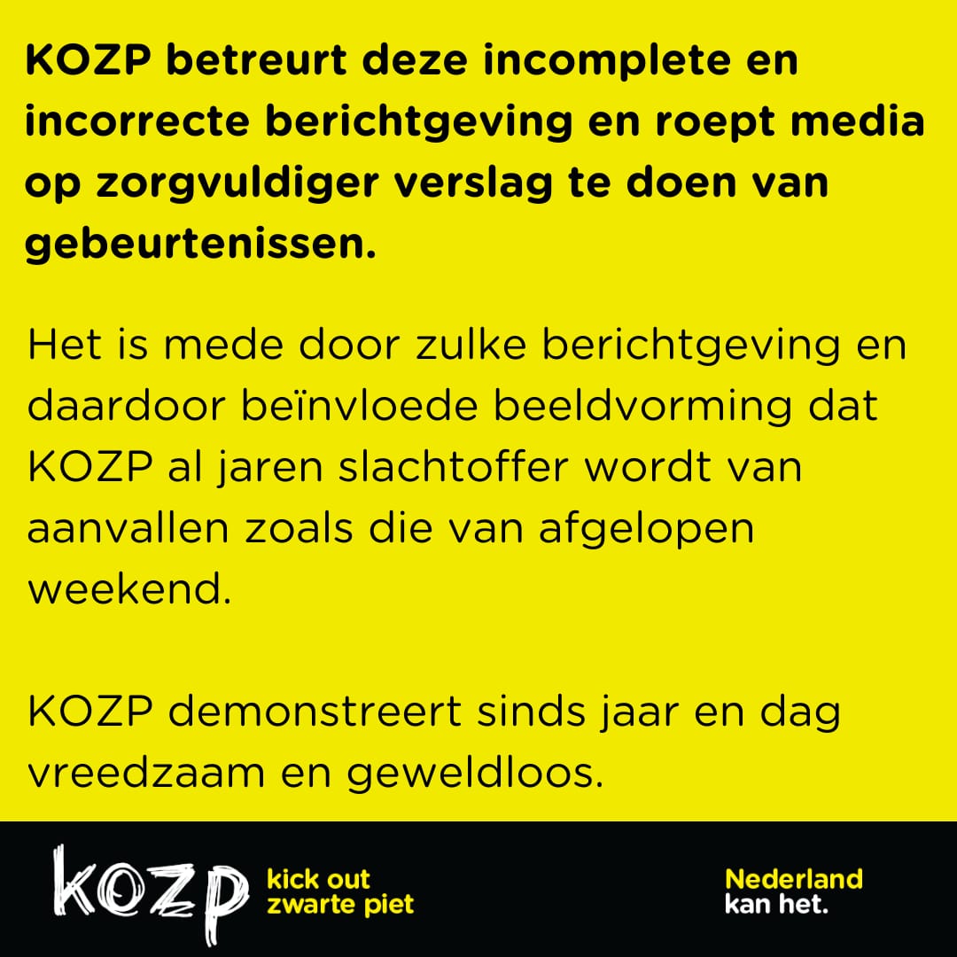 ❗️Wij roepen media op hun verantwoordelijkheid te nemen en zorgvuldig verslag te doen van de gebeurtenissen rondom KOZP-demonstraties: gebruik geen eufemismes, benoem racisme wanneer er sprake van is en benoem welke partij agressief is. Niet alleen komend weekend, wanneer KOZP weer de straat op gaat, maar ook, als het nodig is, in de verdere toekomst.